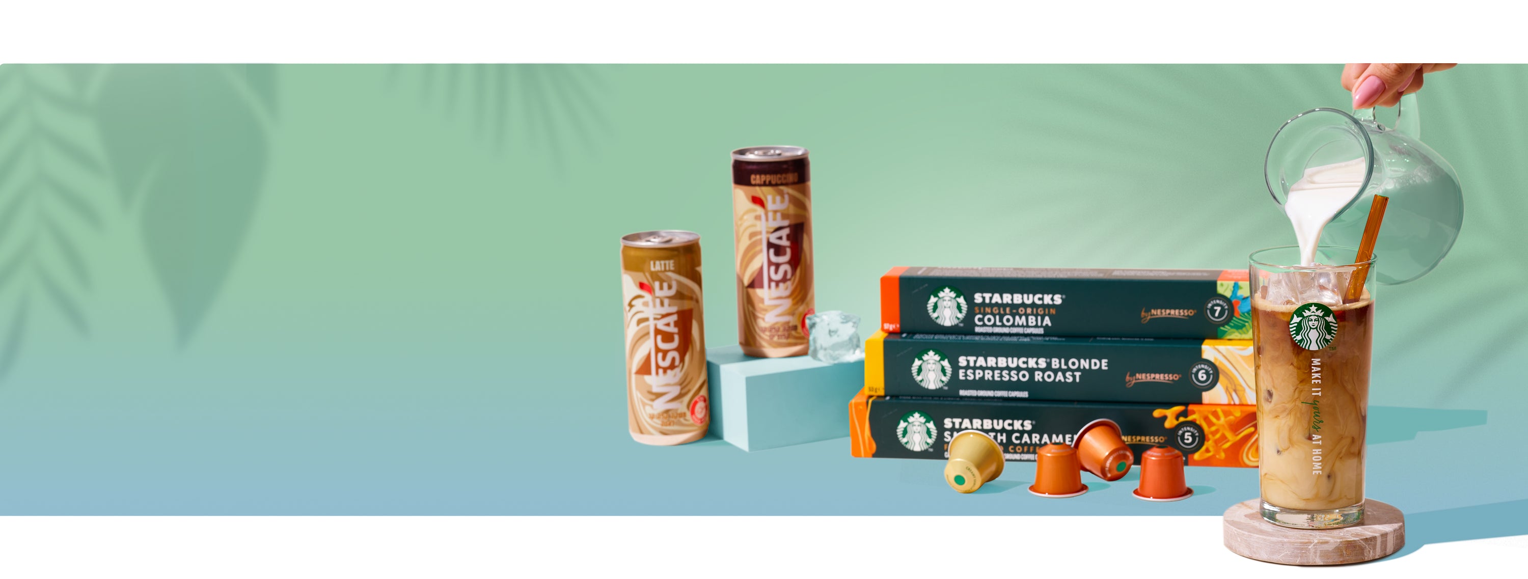 גלו את הקולקציה המרעננת של מוצרי קפה לקיץ: קפסולות סטארבקס בטעמים מגוונים, משקאות קפה קרים מוכנים לשתייה ומתכונים לאייס קפה ביתי.